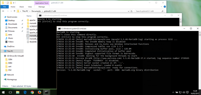 Sekarang Jalankan berkas apache_start.bat dan mariadb_start.bat.