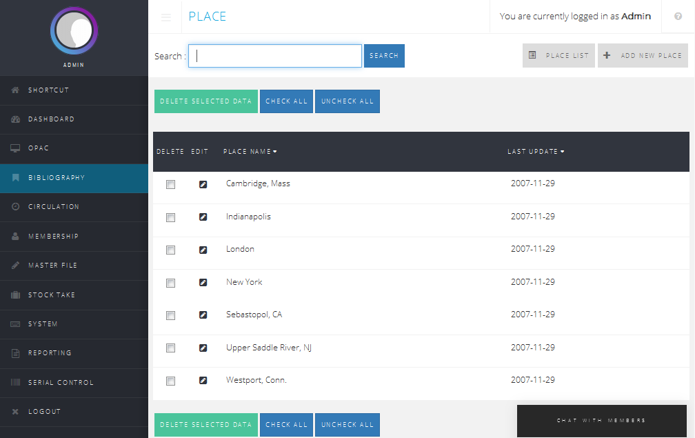 - Place List untuk melihat daftar kota atau tempat terbit. Daftar tempat ini dapat diurutkan berdasarkan Place Name dan Last Update;