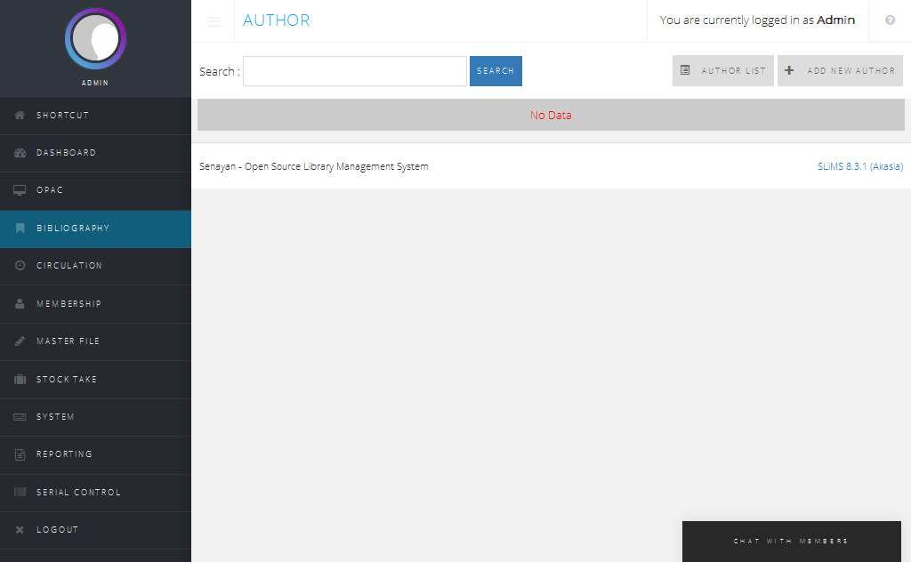 Sub-menu ini diisikan dengan nama pengarang dan jenis pengarang (pribadi atau institusi). Sub-menu ini memiliki beberapa fitur seperti:
