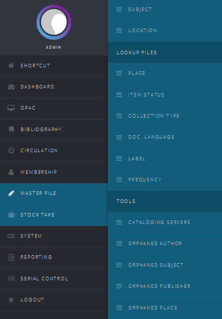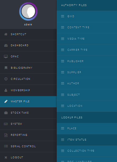Menu Master File memungkinkan kita untuk dapat memasukkan data yang digunakan sebagai acuan dalam entri data bibliografi. Data-data yang dapat kita definisikan dalam menu Master File ini adalah: