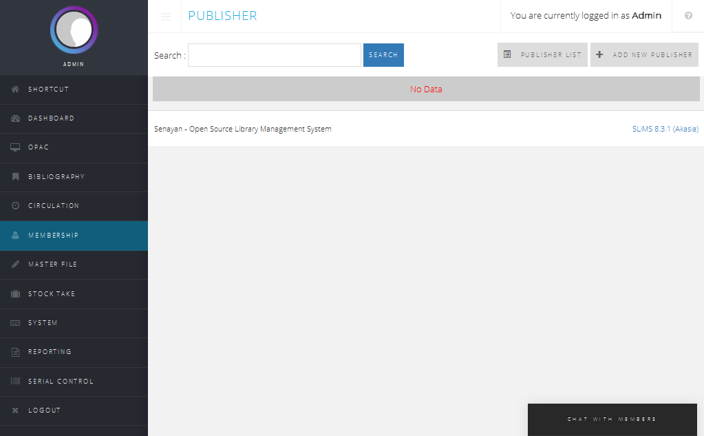 Sub-menu ini digunakan untuk menapis nama penerbit yang ada dalam pangkalan data SLiMS, namun tidak digunakan. Ketika telah ditapis dengan cara klik Orphaned Publisher, akan muncul daftar nama penerbit yang tidak digunakan. Jika anda ingin menghapus, silakan pilih beberapa atau semua kemudian Delete.