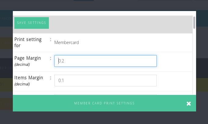 Kartu anggota juga dapat disetel ukurannya melalui Member Card Print Settings yang dilambangkan dengan ikon kunci di sebelah tombol Print Member Cards for Selected Data.